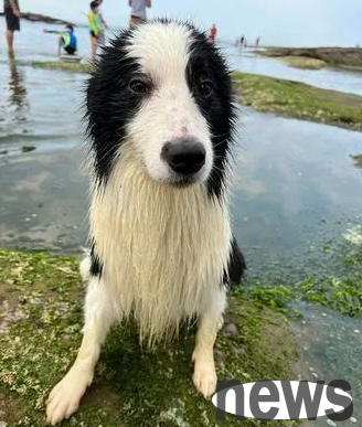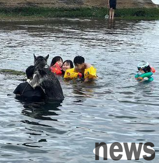 The shit shoveling officer family took their two dogs to the beach to swim today, Erha Zhang Shuha and Bian Mu Zhang Shufen. Zhang Shuha was swimming in the water for the first time. Panicked...