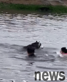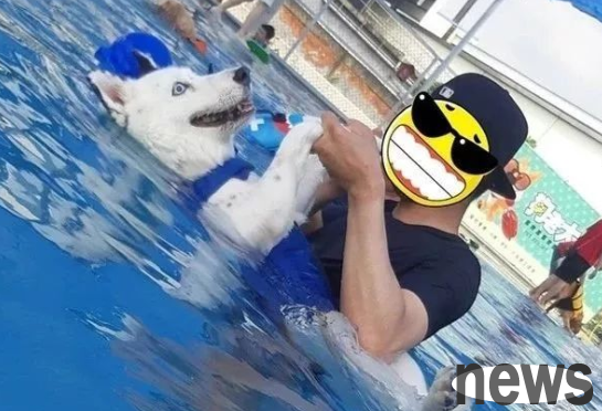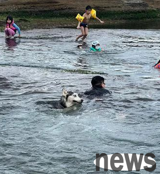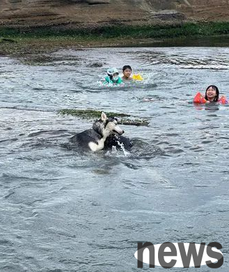 Here Zhang Shuha was panicking for survival and used his owner as a "pedal", while on the other side Zhang Shufen was having a lot of fun playing in the water alone...