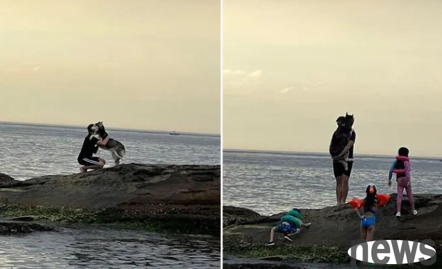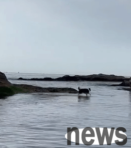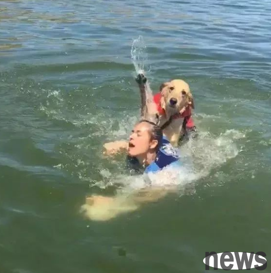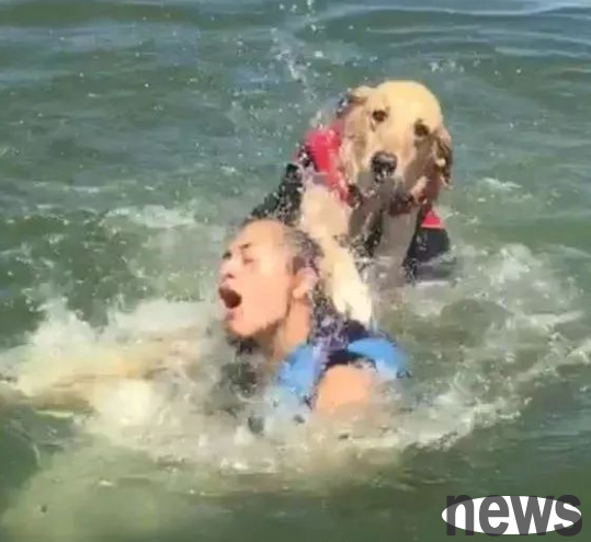 Fortunately, the little owner was not seriously injured. The scavenger also noticed the danger and took the dog to the shallow water area to slowly adapt, and then it relaxed.