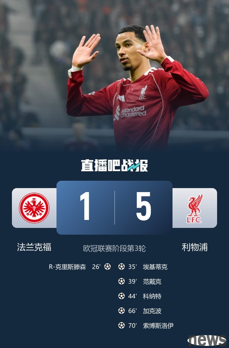 Ended four consecutive losses! Liverpool reversed Frankfurt 5-1. Wirtz made two assists and Gak Posobo passed and shot
