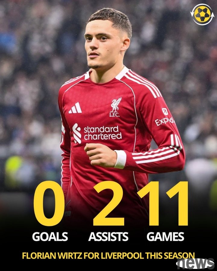 In the third round of the UEFA Champions League, Liverpool beat Frankfurt 5-1. Wirtz made two assists, ending the embarrassing record of participating in goal statistics!