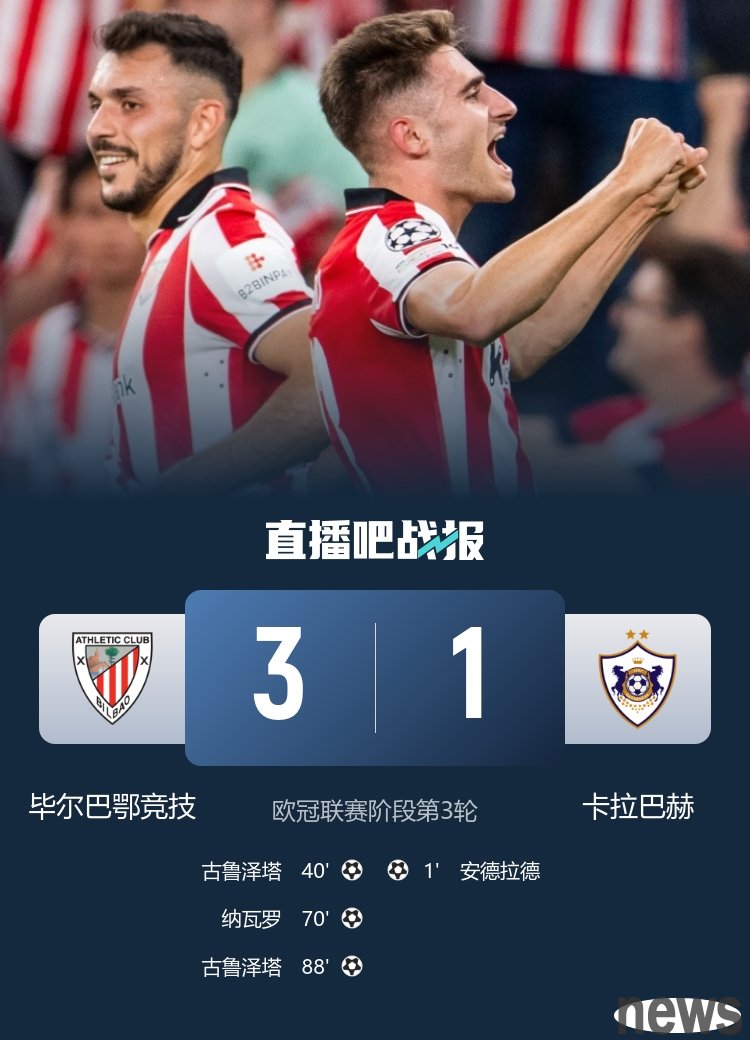 First win in the Champions League! Biba reversed Karabakh 3-1, Guruzeta double-shot Karabakh suffered its first defeat