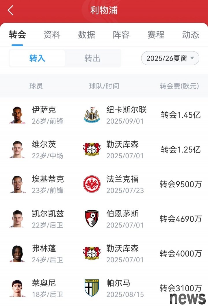 In this summer transfer window, Liverpool spent an unprecedented 482.9 million euros on signings, bringing in two transfer bidders, Wirtz and Isaac. Although core players like Dias have left the team, most people believe that the new signings are enough to make up for the vacancy left by his departure.